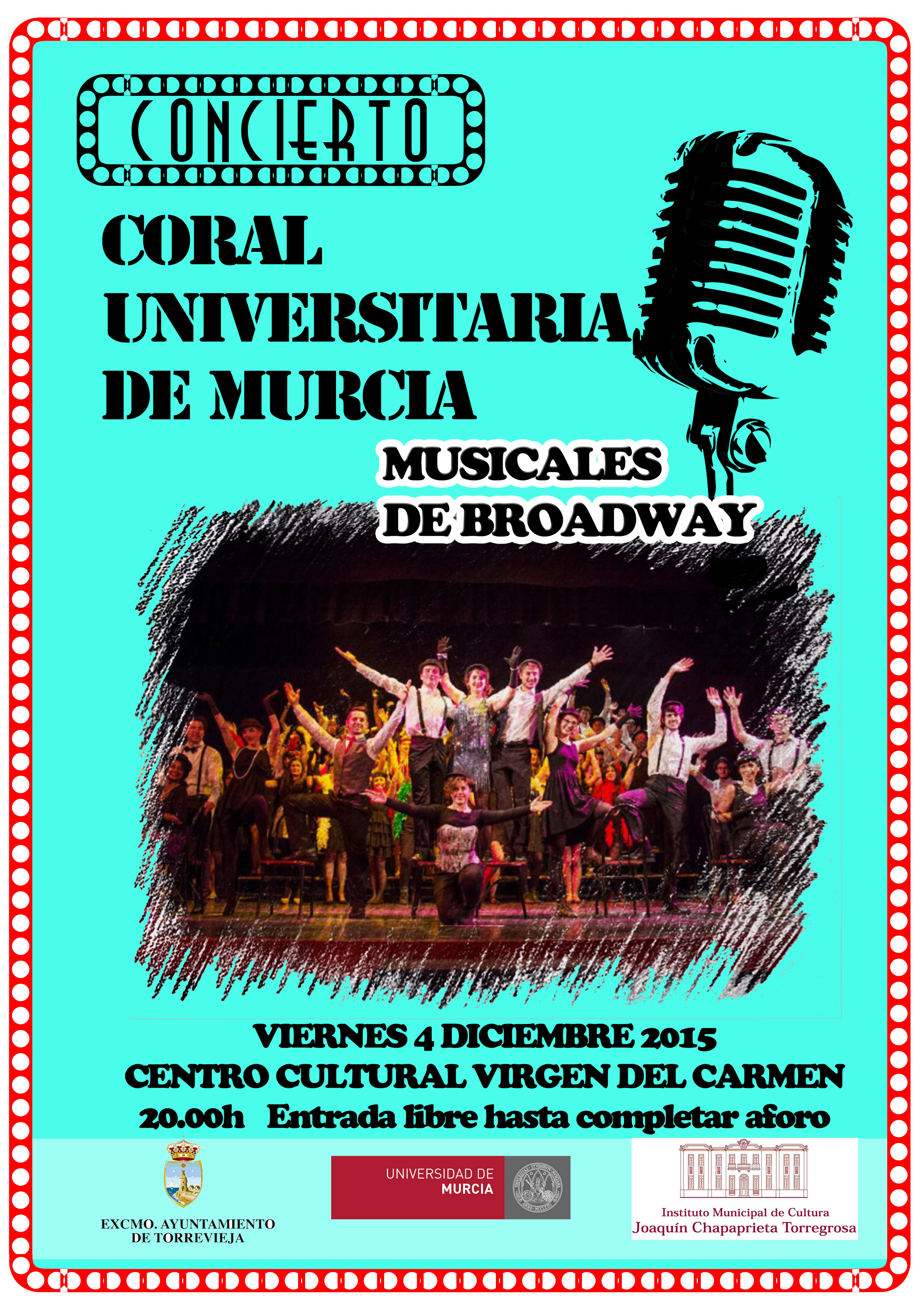 La coral Universitaria de Murcia está compuesta por jóvenes universitarios con edades comprendidas entre los 18 y los 25 años que forman parte del brazo artístico de la citada universidad que impulsa y promociona al música en todos sus estilos y perspectivas. Su misión es impulsar y fomentar la presencia y el gusto por la música tanto en el ámbito universitario como en la sociedad en general.