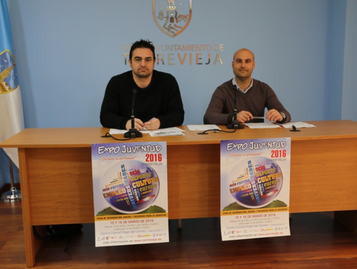 El concejal de Empleo y Fomento del Ayuntamiento de Torrevieja, Víctor Ferrández y el concejal de Juventud y Deportes, Pablo Samper, han presentado en la mañana de hoy “Expo-Juventud Torrevieja 2016”, una feria que se desarrollará en elCentro Cultural Virgen del Carmen los días 15 y 16 de marzo.