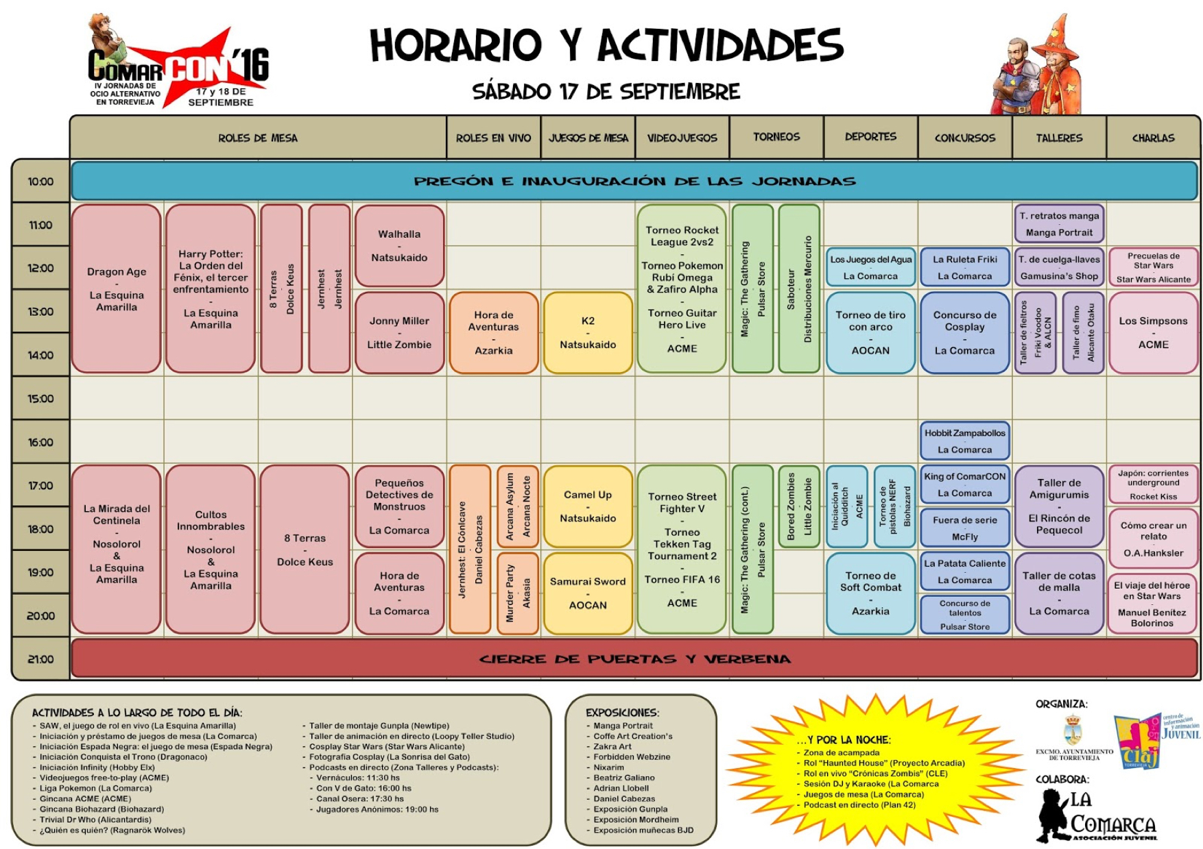 A continuación, se detalla la oferta propuesta para La ComarCON’16 basada en las actividades de años anteriores y la planificación para este año:
