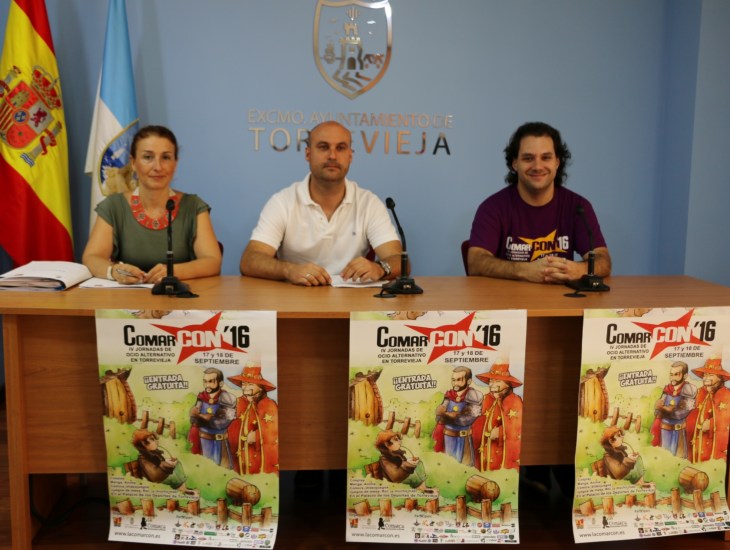 El concejal de Juventud, Pablo Samper, acompañado por el coordinador de la Asociación Juvenil La Comarca, Román Mrozowycz, y la informadora juvenil del CIAJ, Rosa María Lárazo, ha presentado la ComarCON16, una jornada de ocio alternativo que se desarrollará en el Palacio de los Deportes de Torrevieja los próximos días 17 y 18 de septiembre con las señas de identidad que definen este evento “la entrada gratuita, la variedad de actividades y el fomento del trabajo de asociaciones dedicadas a este fin”, ha dicho el edil.