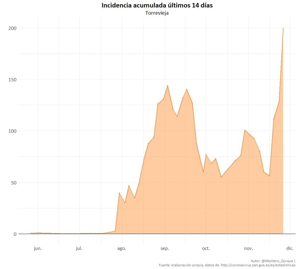 La Incidencia Acumulada en 14 días ha pasado de 60 a 199 casos por cada 100mil habitantes en Torrevieja por lo que es preciso extremar las precauciones y establecer un paquete de medidas preventivas por parte del gobierno local.