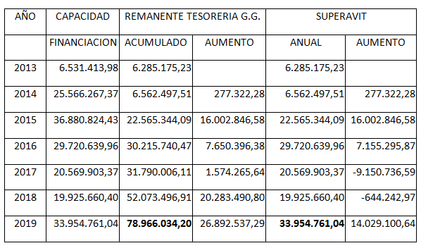 El informe del Órgano de Contabilidad de fecha 14 de mayo de 2020, establecía el superávit de la liquidación de dicho presupuesto en casi 34 millones de euros.