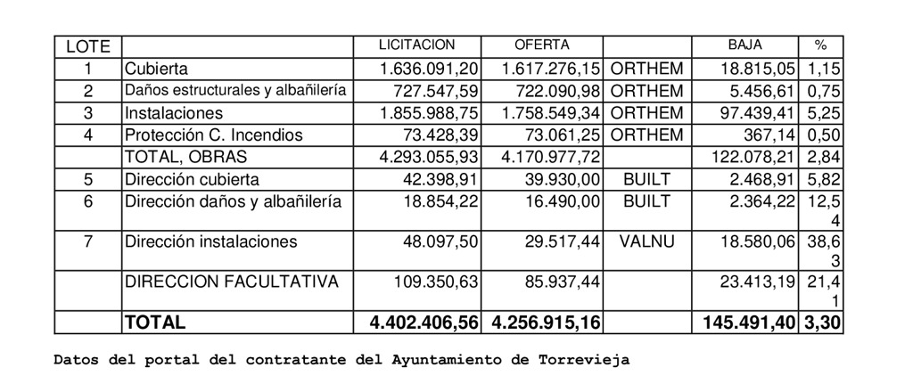 Samper concluye afirmando que “la auténtica realidad es que 36 días después el alcalde ha dado por hecho en sus declaraciones a pie de obra que la reforma costará unos 5,5 millones de euros, lo que supone un incremento de 1,4 millones sobre el precio de adjudicación de 4,26 millones. Desde Sueña Torrevieja apoyaremos todas las inversiones que sean beneficiosas para nuestro municipio, pero no a toda costa. No vamos a admitir que el alcalde haga y deshaga a su antojo, mienta, trate de ocultar información y que puedan producirse supuestas ilegalidades. ¿Volvemos otra vez al pasado y a los famosos sobrecostes?”.