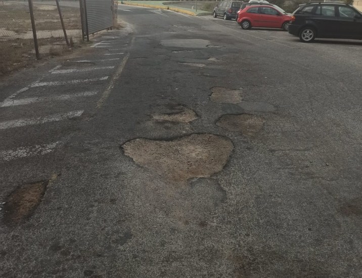 Los vecinos vienen durante meses denunciando el mal estado de la calzada en la rotonda de acceso por la Calle Del Mar y que se encuentra llena de socavones y ha provocado incluso accidentes ante la pasividad del equipo de gobierno del PP