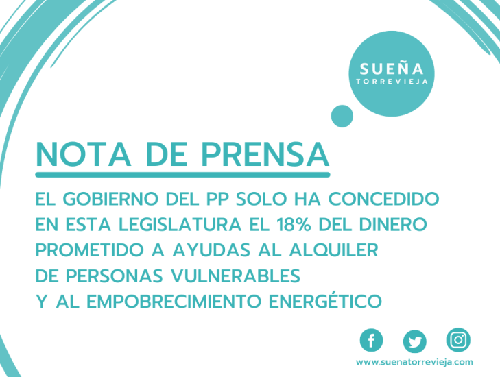 Pablo Samper, portavoz de Sueña Torrevieja explica que “es preciso matizar que en el año 2019 disponiendo de un presupuesto de 43.434 euros, las obligaciones reconocidas por estas ayudas fueron 3.083 euros en el programa de empobrecimiento energético, y cero patatero en el de alquiler a personas vulnerables.