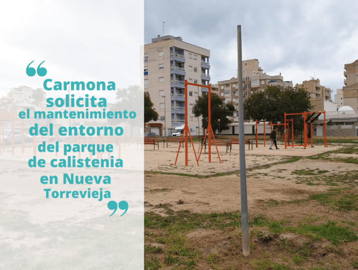 Como ponen de manifiesto las quejas recibidas por el concejal en el Ayuntamiento, Rodolfo Carmona, y el grupo municipal, Sueña Torrevieja, por parte de vecinos de la zona de Nueva Torrevieja a través de la iniciativa de UNA TORREVIEJA MEJOR CADA DÍA, las condiciones del entorno del parque de Calistenia, así como otras áreas del barrio, necesitan una “urgente puesta a punto”.