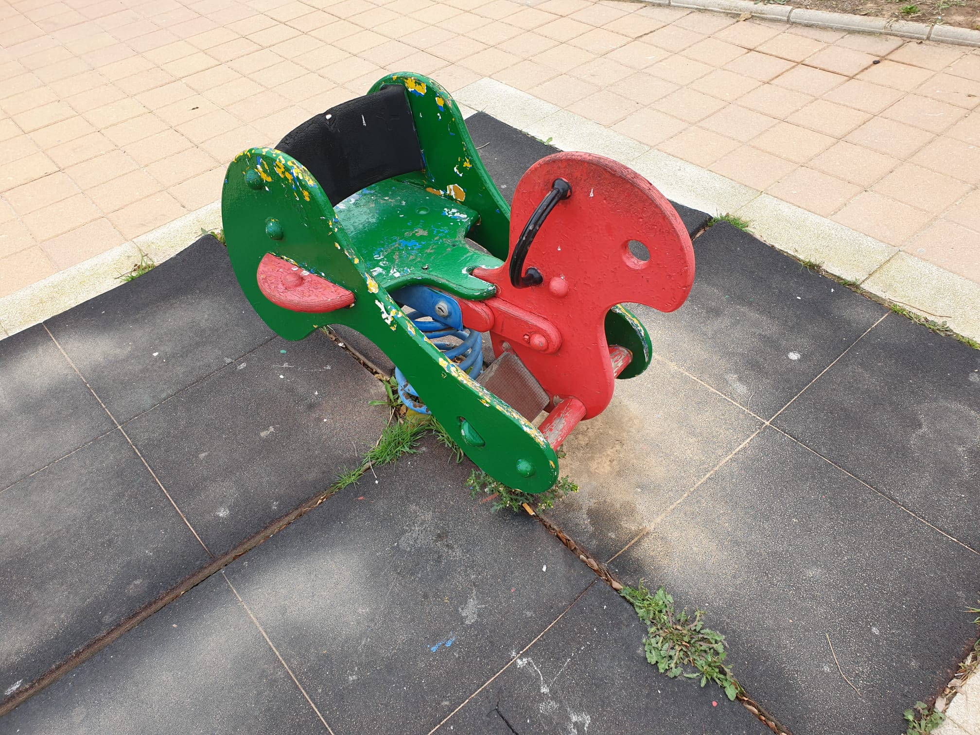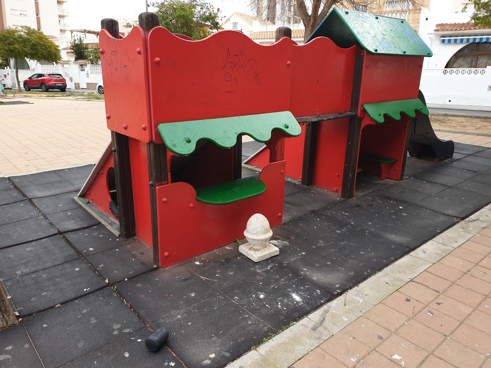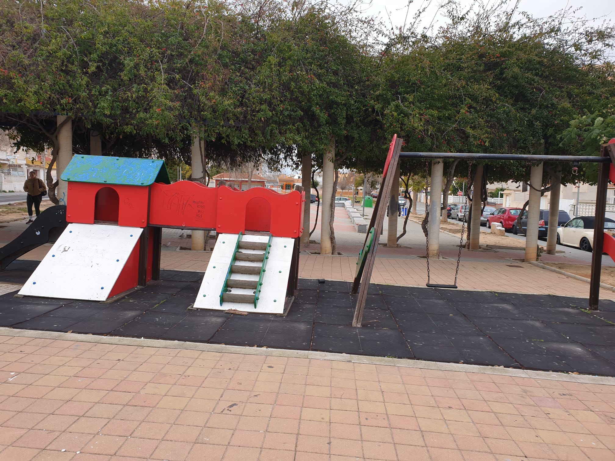 Lejos de resultar un lugar de esparcimiento y ocio agradable, nos encontramos con un parque infantil obsoleto, en mal estado y con pérdida de elementos. Así mismo, la zona verde, si así puede llamarse, está descuidada, donde se acumulan suciedades y vertidos, numerosas farolas se encuentran rotas o faltan las luminarias, así como cables eléctricos desprotegidos y al alcance de la mano de cualquier niño.