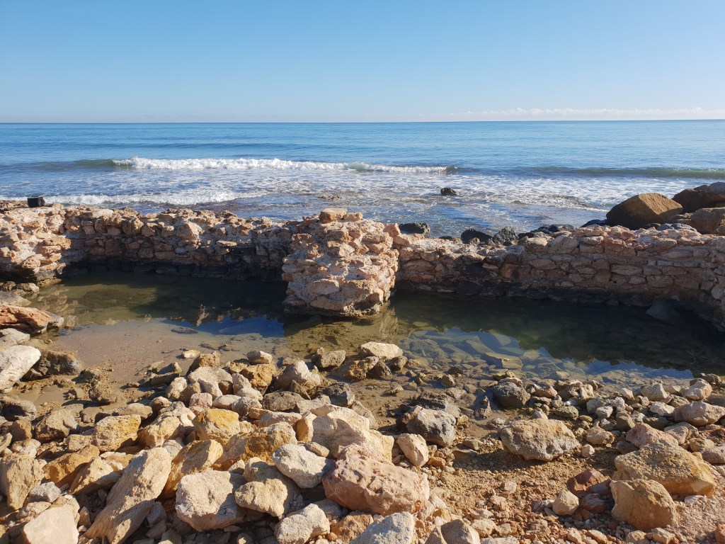 Por un lado, una marítima que conectaba toda la costa mediterránea occidental desde Cádiz hasta Rosas, en Gerona, y cuyas embarcaciones se veían obligadas a descansar continuamente en numerosos puntos del litoral al ser una navegación de cabotaje. Sumergidos en el mar, se han encontrado infinidad de ánforas y otros objetos que nos describen la actividad frenética que experimentó el territorio como lugar de carga y comercialización de sal, esparto, salazones y “garum”, una salsa muy codiciada en el mundo romano y que estaba elaborada con tripas de pescado, especias y sal.