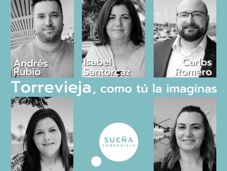 Pablo Samper, candidato a la alcaldía de Sueña Torrevieja, afirma que “tengo el orgullo de presentar a 2 hombres y 3 mujeres que me acompañarán en el camino hacia la alcaldía de Torrevieja y que representan a la ciudad plural y moderna que queremos construir”.