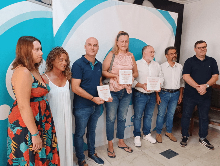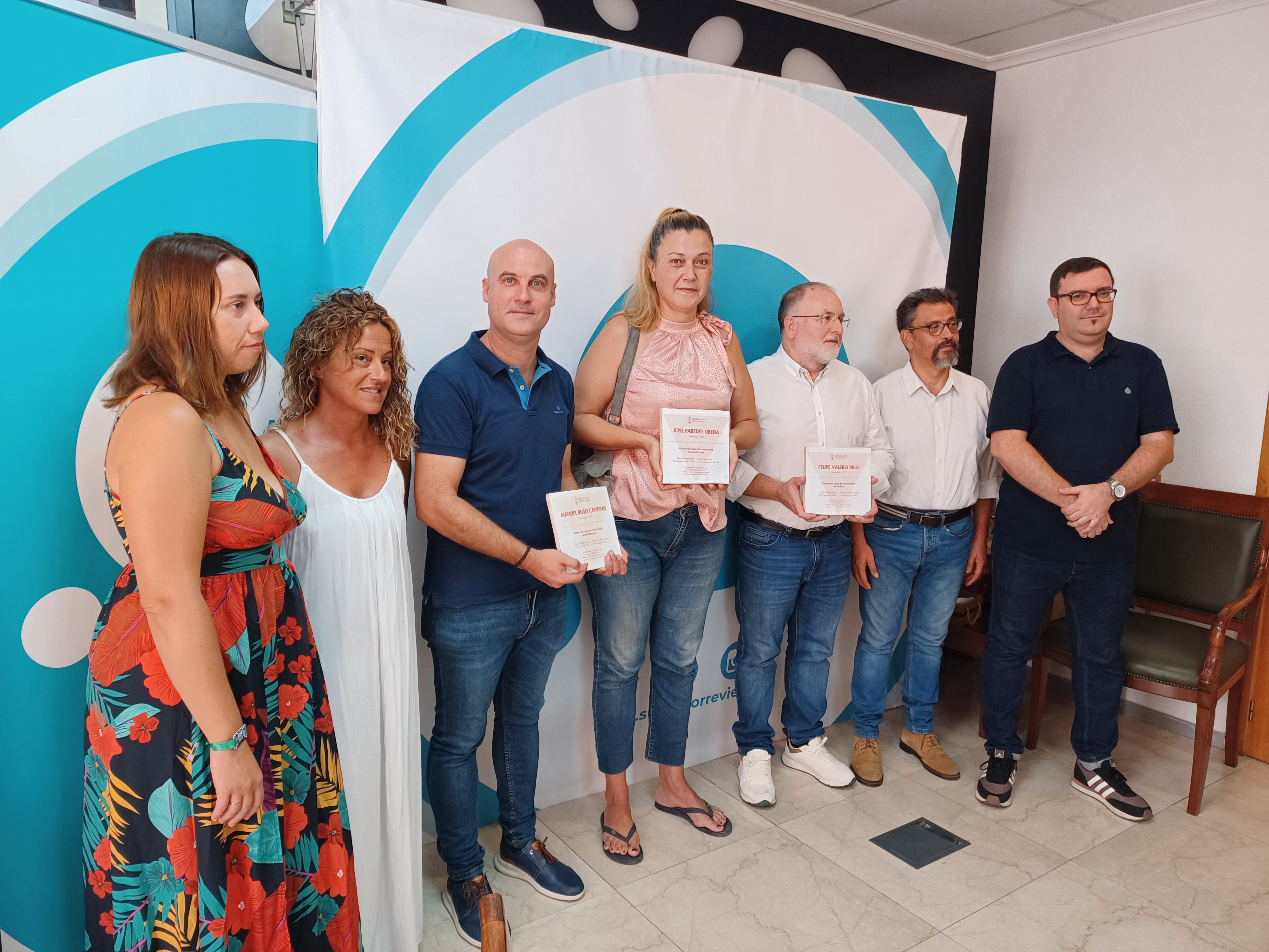 Pablo Samper junto a miembros de la ejecutiva de Sueña Torrevieja y el exedil Andrés Antón, hacen entrega del “Taullet de la memoria” a la familia de D. José Paredes Úbeda, vecino de Torrevieja, y víctima de los campos de concentración nazis.