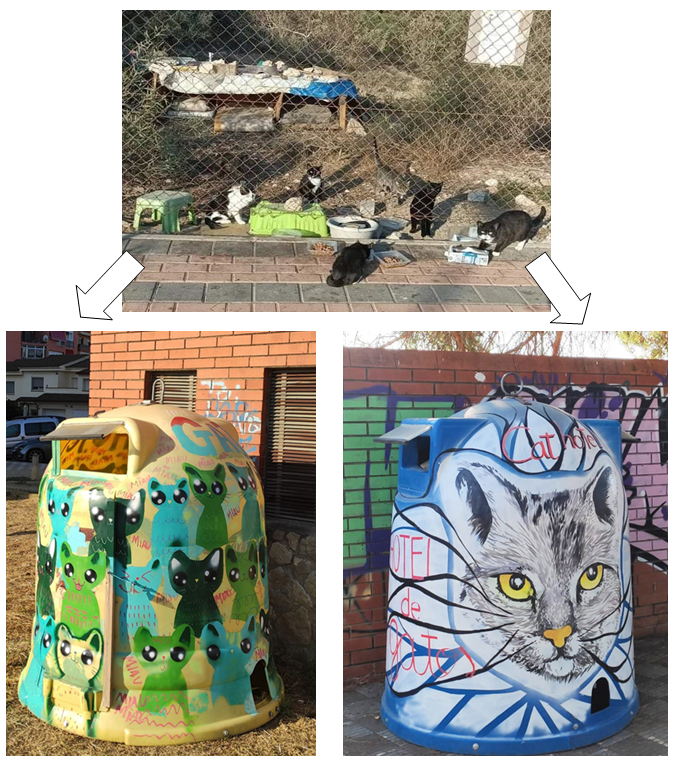 - Proponer al Ayuntamiento de Torrevieja la adaptación de 20 contenedores para su uso como refugio felino en las zonas de más afluencia de gatos ferales.