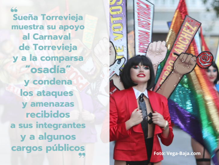 Pablo Samper, portavoz de Sueña Torrevieja, explica que ”como cargo público de la ciudad de Torrevieja y representante de mi formación política, quiero dejar claro mi total apoyo al Carnaval de Torrevieja y a la Comparsa Osadía ante los ataques recibidos y orquestados por un sector ultra que busca que retrocedamos en nuestros derechos y libertades”.