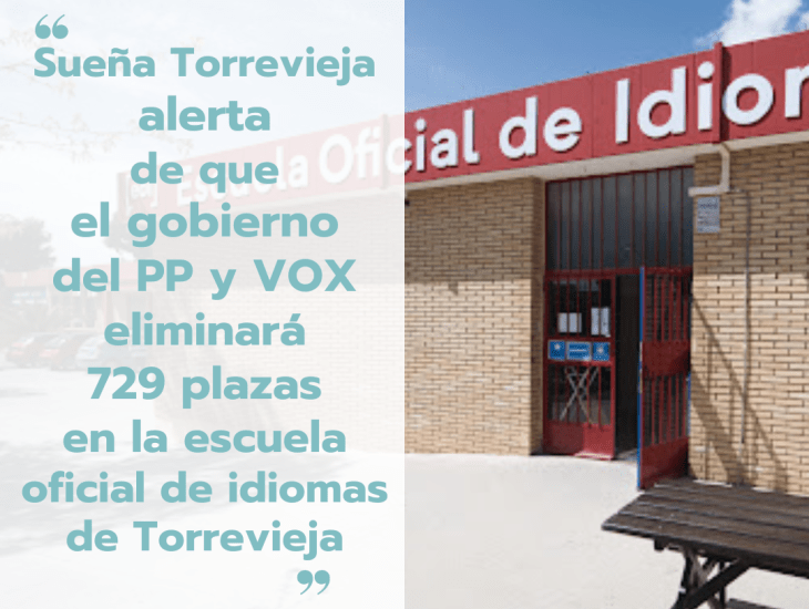 Pablo Samper, portavoz de Sueña Torrevieja, asegura que “Torrevieja, como quinta ciudad de la Comunidad Valenciana, vuelve a sufrir el menosprecio del gobierno del PP y Vox con la eliminación de hasta 729 plazas de alumnos que cursan sus estudios en la Escuela Oficial de Idiomas de nuestro municipio”.