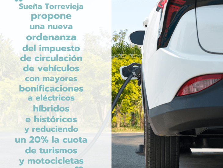 Pablo Samper, portavoz de Sueña Torrevieja, afirma que “Torrevieja cuenta con una ordenanza de IVTM antigua (año 2014) y desactualizada que no contempla bonificaciones suficientes para los nuevos vehículos no contaminantes que se están imponiendo en el mercado con la implantación de las bajas de zonas emisiones”