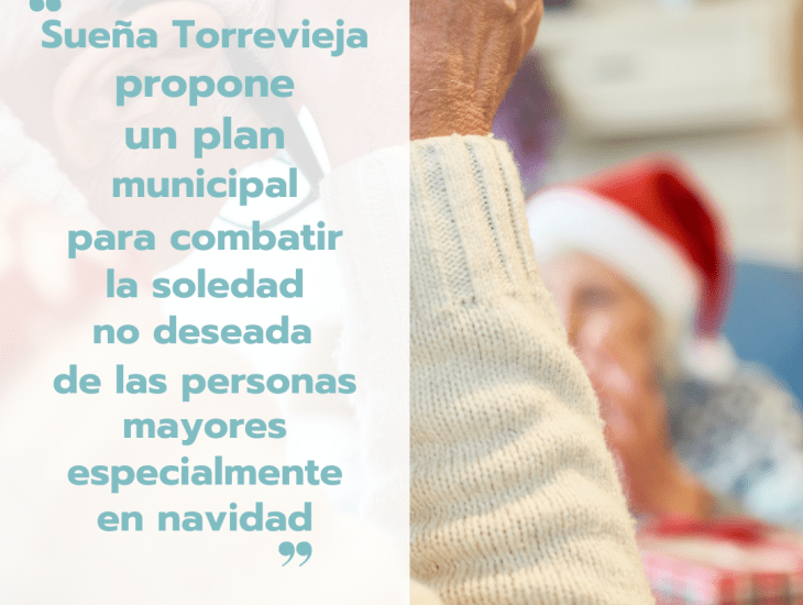 El grupo municipal Sueña Torrevieja ha presentado una moción para el próximo pleno del día 22 de diciembre para impulsar un Plan Municipal de Prevención de la Soledad No Deseada, con especial atención a las personas mayores que viven solas y al periodo navideño, fechas en las que el aislamiento social se intensifica.