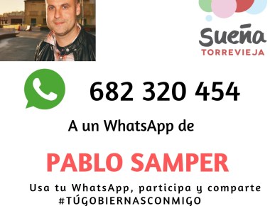 Desde Sueña Torrevieja ponemos a disposición de los vecinos de Torrevieja un número de WhatsApp con la finalidad de que hablen directamente con nuestro candidato a la alcaldía de Torrevieja, Pablo Samper, así usando su […]