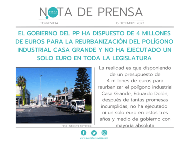 EL GOBIERNO DEL PP HA DISPUESTO DE 4 MILLONES DE EUROS PARA LA REURBANIZACIÓN DEL POLÍGONO INDUSTRIAL CASA GRANDE Y NO HA EJECUTADO UN SOLO EURO EN TODA LA LEGISLATURA