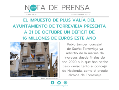 EL IMPUESTO DE PLUS VALÍA DEL AYUNTAMIENTO DE TORREVIEJA PRESENTA A 31 DE OCTUBRE UN DÉFICIT DE 16 MILLONES DE EUROS ESTE AÑO