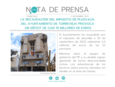 LA RECAUDACIÓN DEL IMPUESTO DE PLUSVALÍA DEL AYUNTAMIENTO DE TORREVIEJA PROVOCA UN DÉFICIT DE CASI 19 MILLONES DE EUROS