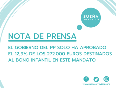 EL GOBIERNO DEL PP SOLO HA APROBADO EL 12,9% DE LOS 272.000 EUROS DESTINADOS AL BONO INFANTIL EN ESTE MANDATO