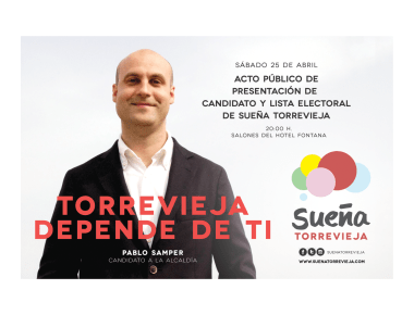 Este próximo sábado 25 de abril, a las 20.00 h en los salones del Hotel Fontana, presentaremos públicamente a nuestro candidato Pablo Samper y la lista electoral. 25 torrevejenses dispuestos a convertirse en las impulsores […]